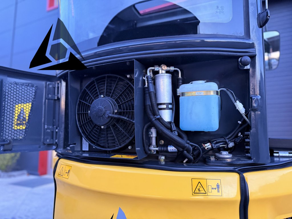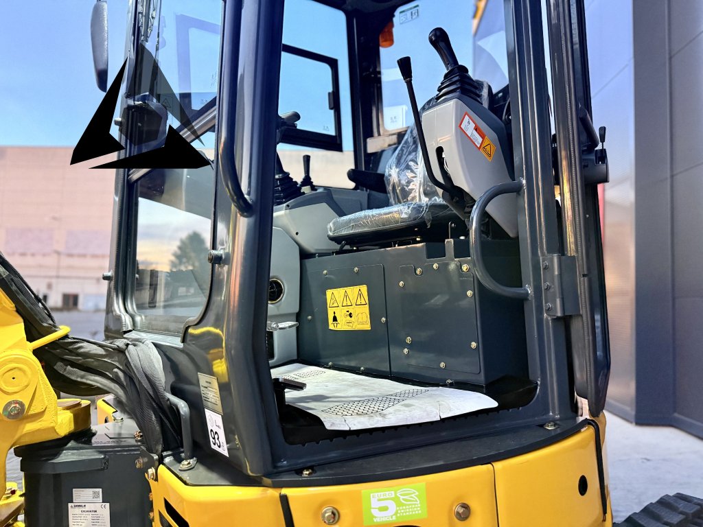 Prostorná kabina nabízí vysokou úroveň komfortu: klimatizaci, topení, LCD displej, rádio, střešní okénko, roletky čelního i střešního skla, boční sklo a nastavitelné sedadlo. Díky nulovému přesahu kabiny je stroj perfektní pro práci v úzkých prostorech a ve městech.